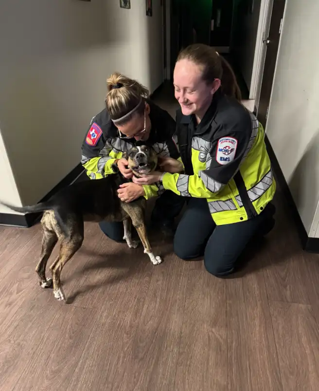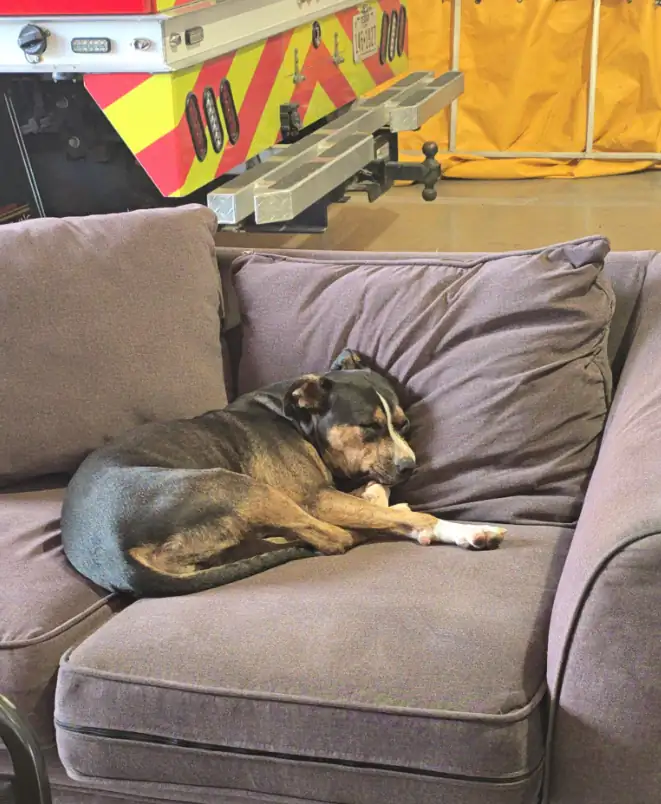 บรรดาเหล่าเจ้าหน้าที่ดับเพลิงและทีมช่วยเหลือแห่ง Montgomery County Emergency Service District 9 ต่างก็พากันสนอกสนใจเจ้าสุนัขตัวนี้ พวกเขาได้ให้น้ำและอาหารเหลือแก่เจ้าตูบด้วย