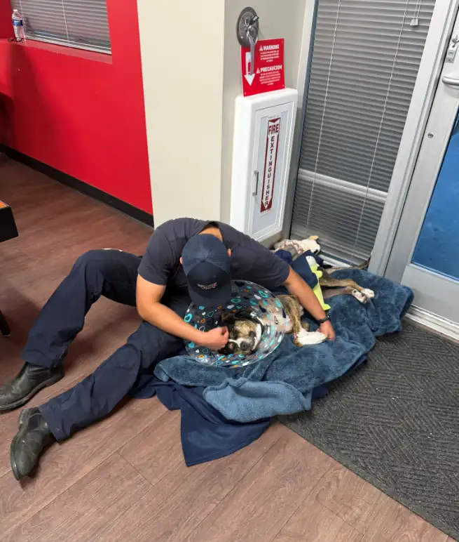 ด้วยสัญชาติญาณของหน่วยดับเพลิง ทุกคนพร้อมใจกันช่วยเจ้าตูบ หนึ่งในพยาบาลกู้ชีพรีบจัดรถพาเจ้าตูบไปส่งยังสัตวแพทย์ เมื่อส่อง X-ray แล้วจึงพบว่ามี “ กระดูกขาแตก “ ซึ่งต้องเข้ารับการผ่าตัดโดยเร็ว